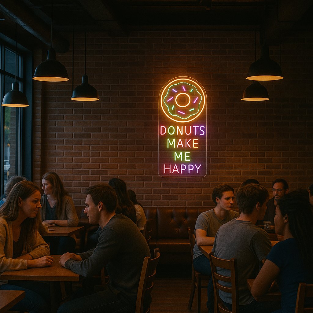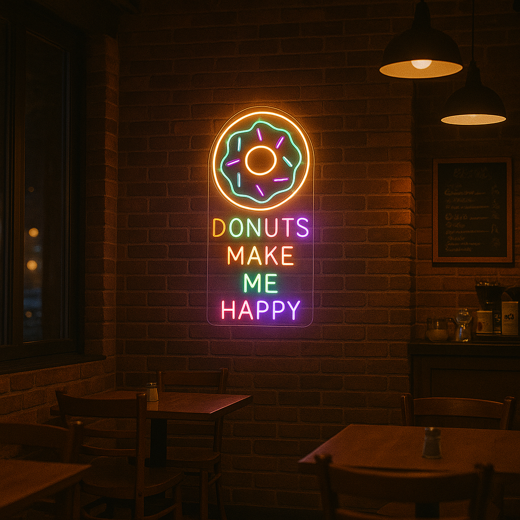 Donuts Make Me Happy Neon Sign | Sweet, Vibrant & Full of Personality