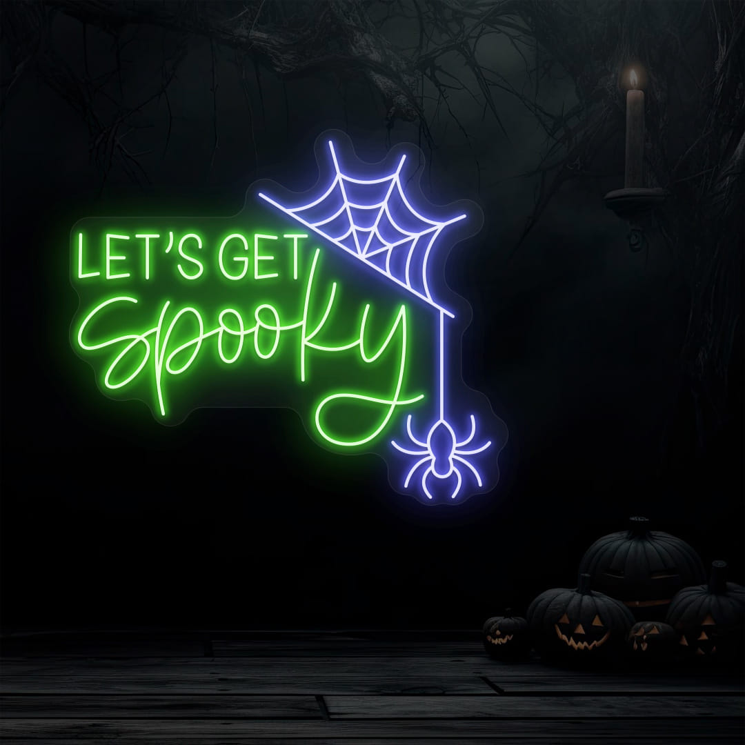 - “Let’s Get Spooky” LED neon design for Halloween and party décor